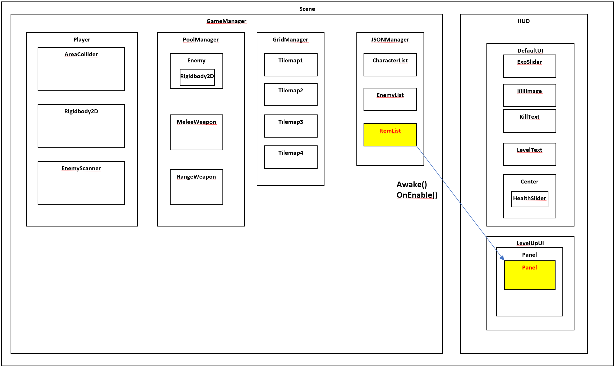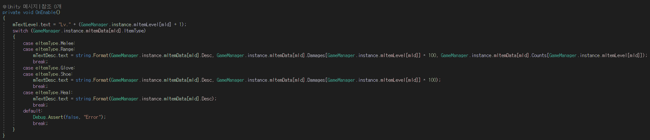 2) 객체 Enable 시, GameManager가 관리하는 ItemList 정보를 가져오는 코드 존재 (OnEnable() 함수)