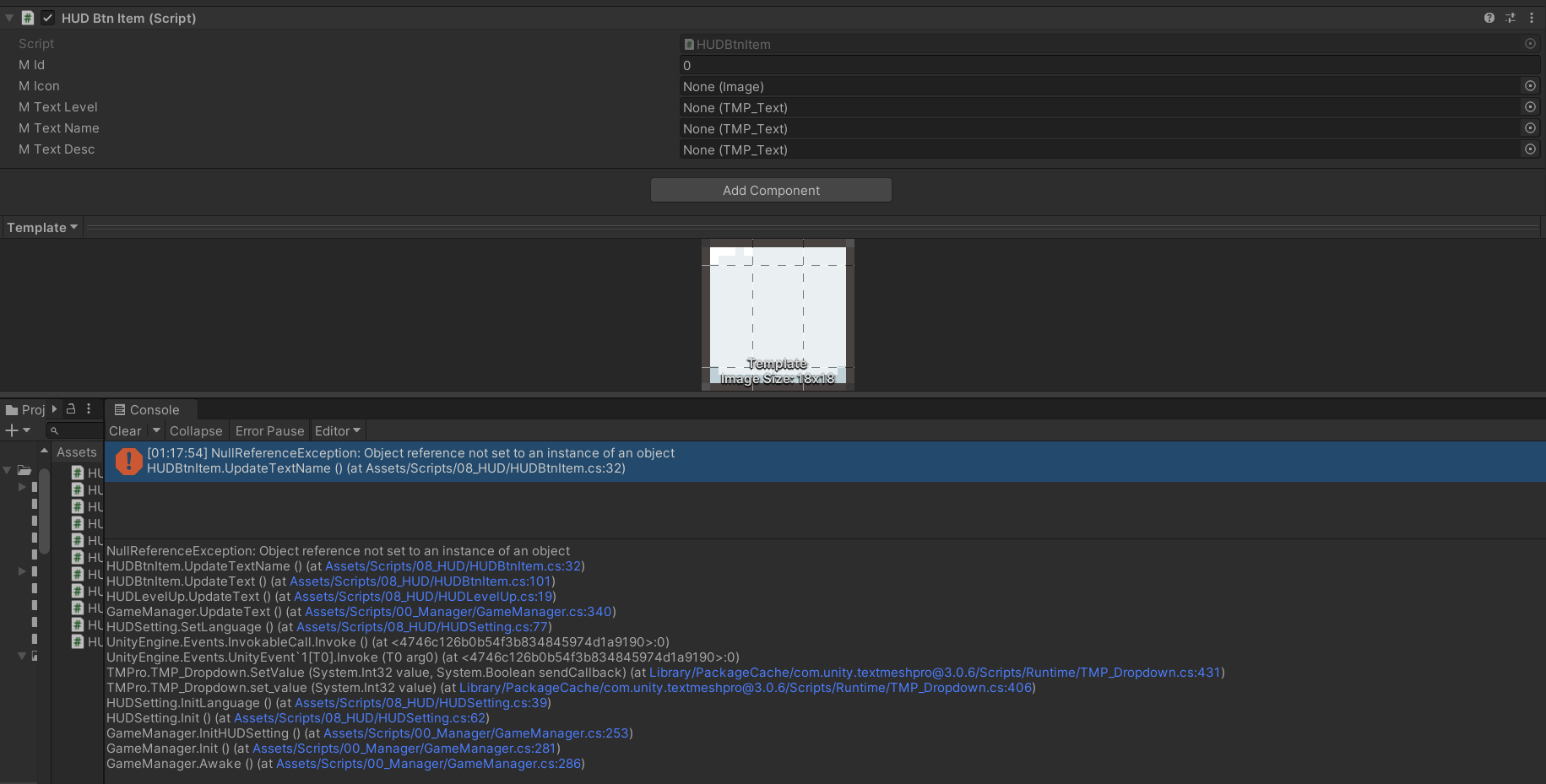 - 대신 Template에서 연결이 필요한 항목 (e.g. Text)는 public으로 선언하여 컴파일 간 동작 순서나 Active와 무관하게 동작이 가능하도록 변경함.