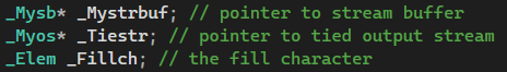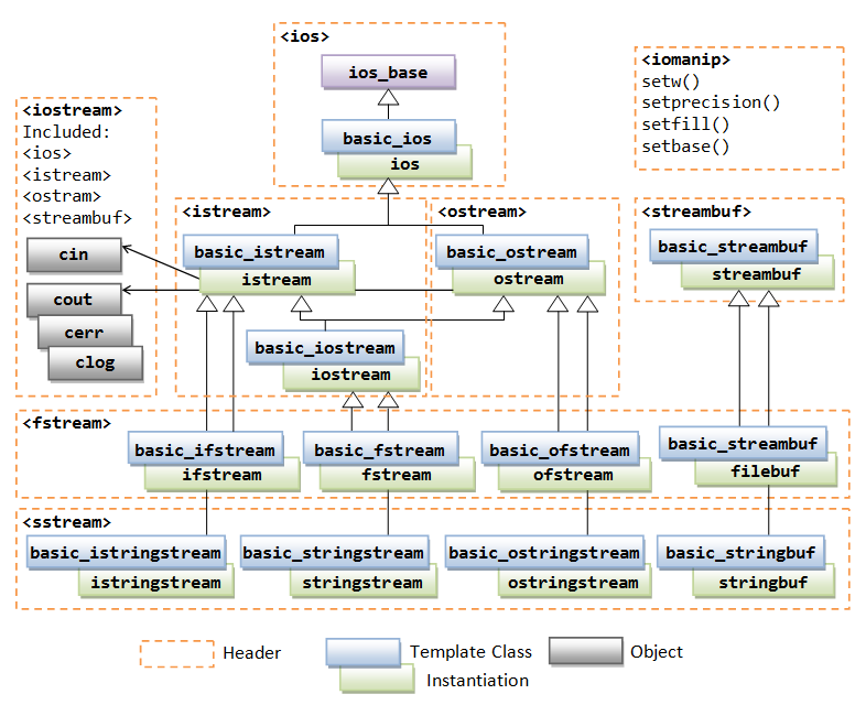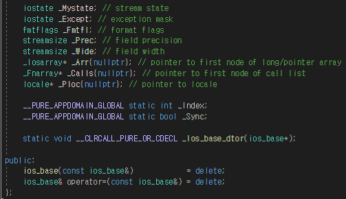 - 멤버 변수: basic_ios는 ostream과 stream buffer를 멤버변수로 갖고 있는다.