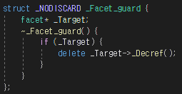 내부에 facet 관련 구조체로 자신을 가리키는 포인터와 참조 카운터를 갖고 있는다.