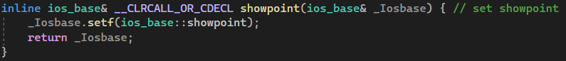 'ios_base' 내 멤버변수 중 '_Fmtfl'에 flag 정보 추가 (showpoint = 0x0010)