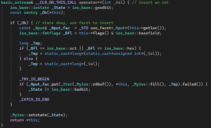 1.3.1. operator<<(int _Val) (in 'basic_ostream' class)