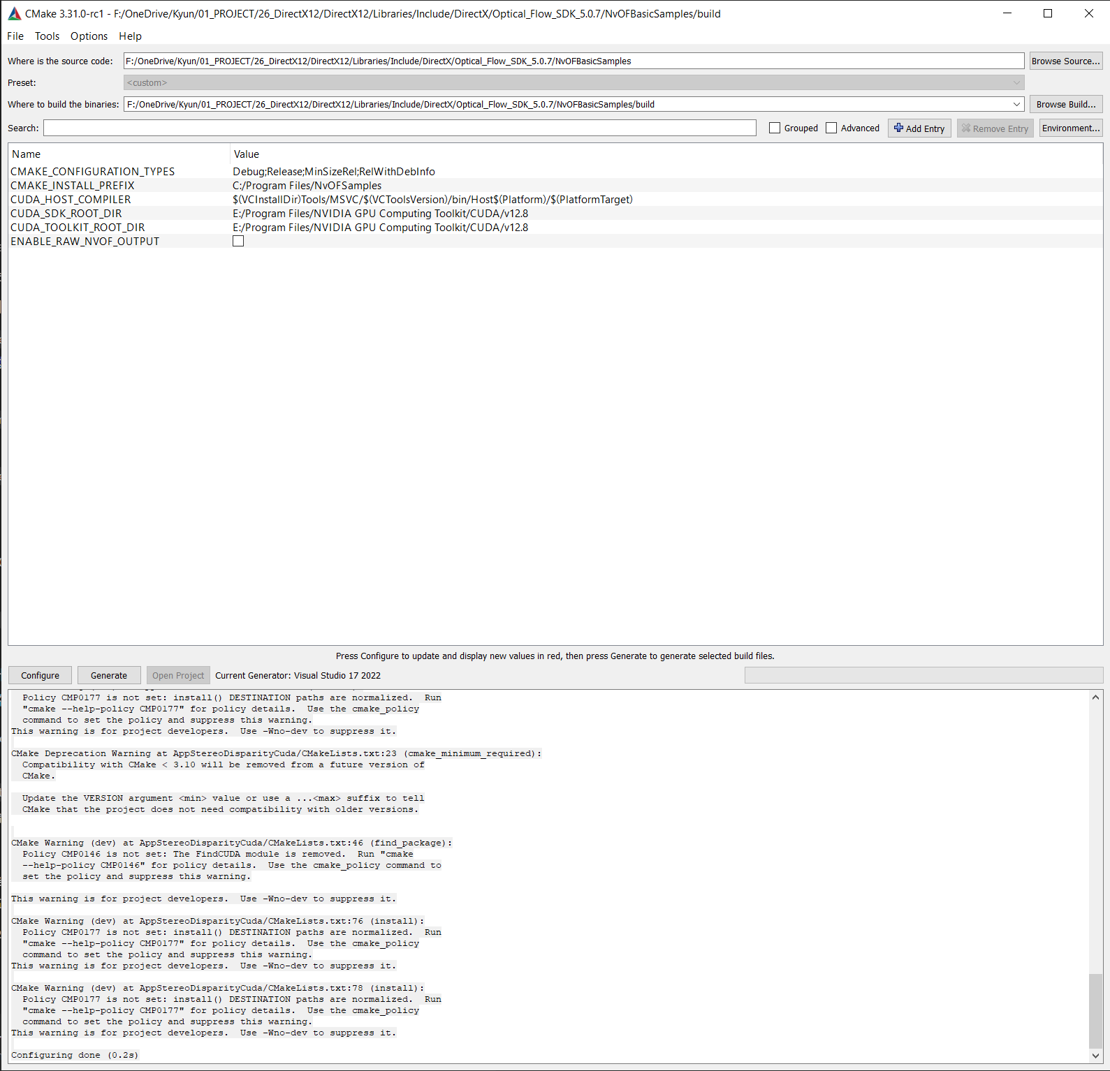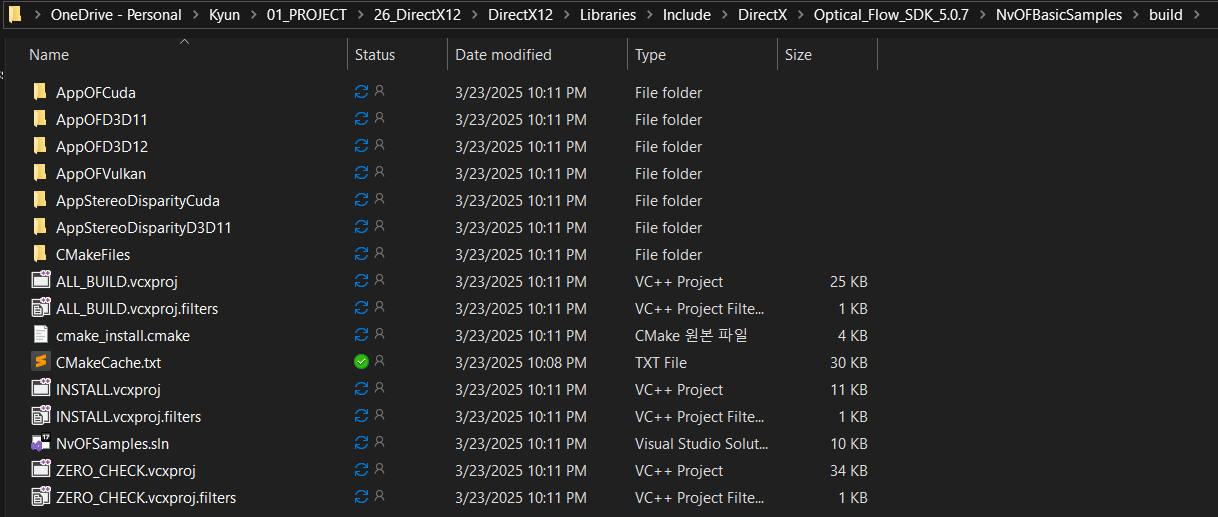 - 오류 메시지 2. nvcc fatal : Could not open output file F:/OneDrive/Kyun/01_PROJECT/26_DirectX12/DirectX12/Libraries/Include/DirectX/Optical_Flow_SDK_5.0.7/NvOFBasicSamples/build/AppStereoDisparityCuda/CMakeFiles/AppStereoDisparityCuda.dir/__/__/Common/Utils/AppStereoDisparityCuda_generated_kernel.cu.obj.NVCC-depend